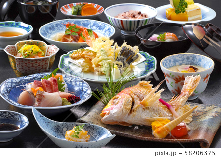 コース内容 前菜・2種のお造り・天ぷら5種盛り・鯛の塩焼き